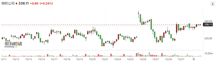 该行分析师给予微软“增持”评级,目标价为425美元。截至周二收盘,微软股价日内扭跌转涨,报每股338.11美元。