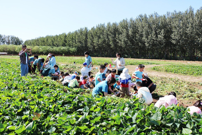 森林小院自正式运营以来,陆续迎来多波研学团与亲子家庭。“挖红薯喽!”“先从周围挖起,把周围的土挖走,再把红薯挖出来!这样红薯就不容易挖烂了。”近日,潞城镇大豆小学的师生们来到森林小院开展“体验农趣,劳有所获”主题实践活动,学习传统扎染技法,体验农耕生活。森林小院目前集科普教学课堂、农作物种植、中草药种植、向日葵花海、帐篷露营餐饮五大功能区于一体。森林小院依托2.5万亩平原生态林森林资源,高质量开展中小学生社会大课堂生态科普、劳动教育、素质拓展、观光旅游、林下露营等活动,通过特色化经营让农村闲置土地活起来。“森林小院的核心是打造一个以天地为师,万物为学为理念的自然科普教育课程体系,是社会化大课堂,我们接受订单式、组团式的来访,这也是我们探索林农文旅融合发展的路径。”岳天敬表示。