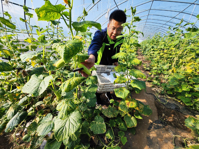 秋收是绿色的,翠绿的生菜、白绿相间的大白菜、青绿的黄瓜,吸引着一波波采摘的人;