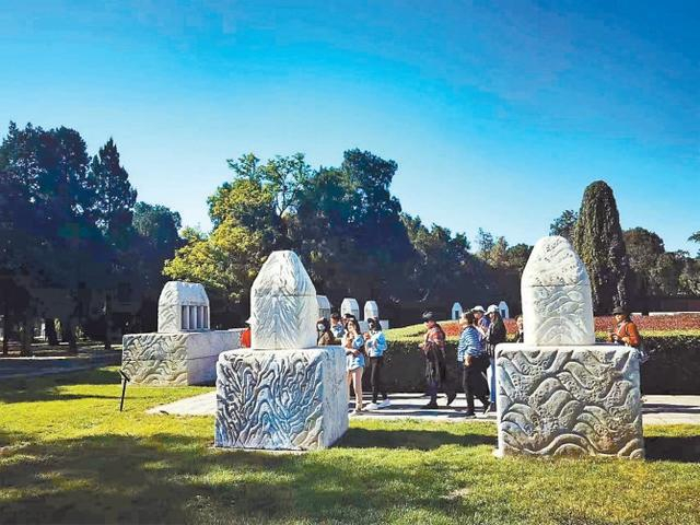 沿着具服殿向西而行,一座座雕刻精美的石龛石座立在草地之间,格外古朴。石龛中是各路山川河海的牌位,之前供奉在天神坛、地祇坛上,后来两坛拆除后便移到了此处。