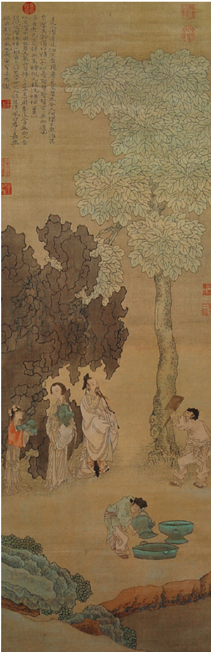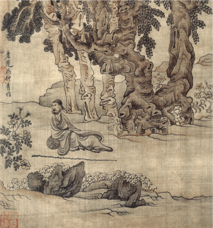 中国艺术家往往在松下创造他们的寂寞世界。寂寞者,忘时忘物也。园林艺术家说,墙内有松,松欲古;松底有石,石欲怪。这里当然有松柏后凋的比德意义,但在文人园林中,又多将其作为“对着绵久说人生”的风物。以古松独立为背景,在流水潺潺、燕羽差池的变化世界中,说不变的故事。寺观园林,多在古松掩映中,所谓道院吹笙,松风袅袅;空门洗钵,花雨纷纷:以松风袅袅的太古之音为背景,来看眼前的花雨纷纷。