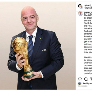 在截止期结束后,国际足联主席因凡蒂诺11月1日也通过个人社交媒体确认,2034年世界杯将由沙特主办。