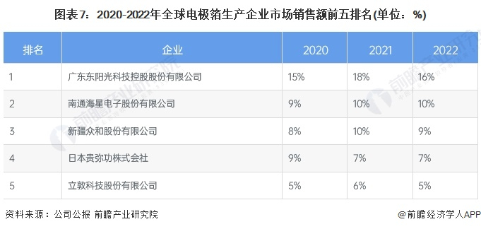 ——东阳光、海星股份、新疆众和为全球电极箔市场三大龙头