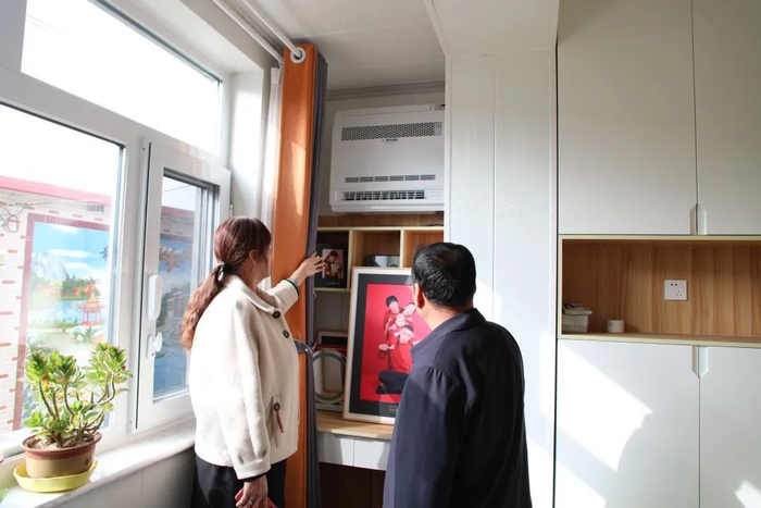 今年7月,村里通知进行“煤改清洁能源”,郭大姐第一个就报了名,如今还没入冬,她家就已经用上了全新的清洁能源,彻底告别了从前“烟熏火燎,一身灰”的日子。“我们家面积大,每年冬天一烧煤就跟‘打仗’似的。不仅屋里都是煤味不安全,地上、桌子上还哪哪都是灰。”郭大姐说:“今年装上了新能源,我们再也不用大冬天往外跑去换煤了,能踏踏实实住新房了。孩子们回来也有了地暖和暖风机,我们老两口终于不用再闻难闻的煤味儿了。”郭大姐的喜悦之情溢于言表。
