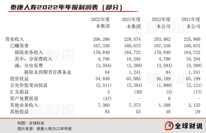 其中很重要的原因之一是投资收益的下降,2022年,泰康人寿投资收益340.48亿元,同比减少48.32%。