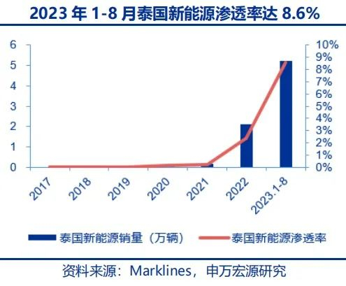 申万宏源研究团队认为,中国汽车品牌之所以能够在泰国等市场快速破局,一方面是由于中国汽车品牌在新能源领域长期积累的技术优势;另一方面,充分迎合当地市场做出本土化产品调整,也是取得成功的重要原因。例如,中国车企在泰国投放车型均为入门级车型,且为右舵车型,完全符合市场需求;推出针对性的泰语语音识别,并搭配符合泰国本地审美的新配色等,以定制化满足了泰国消费者的个性需求。