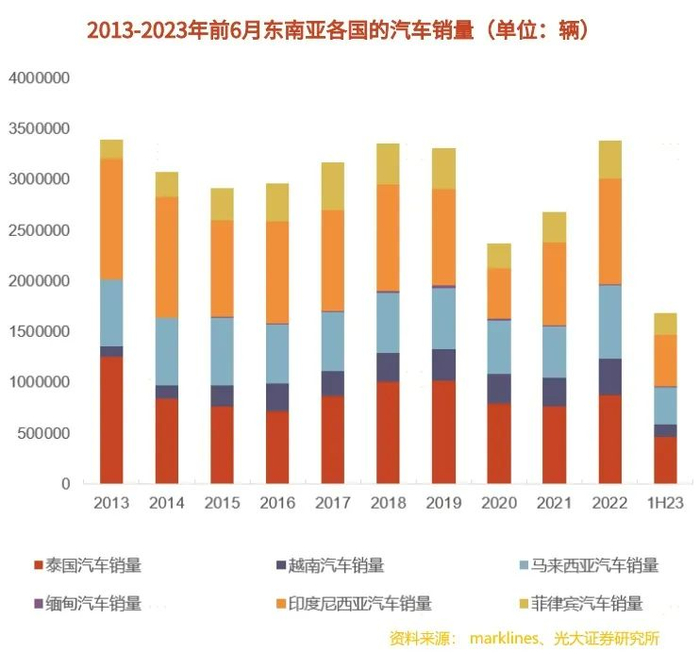 根据盖世汽车研究院的预测,到2025年,东南亚汽车市场销量有望接近400万辆,中国品牌市占率有望达到15%;2030年,东南亚汽车销量将接近500万辆。