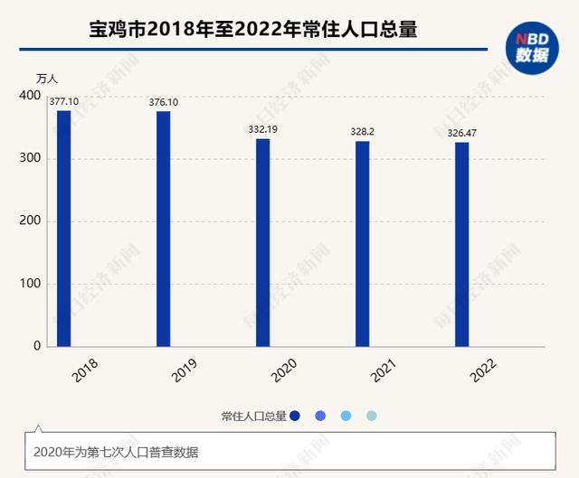 但2020年第七次人口普查数据显示,宝鸡市常住人口却仅有332.19万人,出现“断崖式下降”。2021年末宝鸡市常住人口为328.2万人,2022年末宝鸡市常住人口326.47万人,常住人口总量连续两年出现小幅下降。