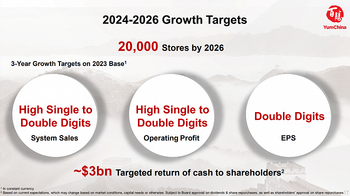 “我们为2024年至2026年制定了清晰的增长路径和目标,其中包括在2026年达到20000家门店,以及这三年间以股息和股份回购的形式向股东回馈30亿美元。我们对于把握增长机遇的能力充满信心。”屈翠容说。