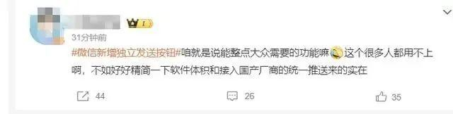 还有网友表示期待更多的功能更新,“语音进度条、朋友圈可以图片评论更值得做啊”“我需要朋友圈可编辑 ”“微信能不能别再占几十个G了啊”......
