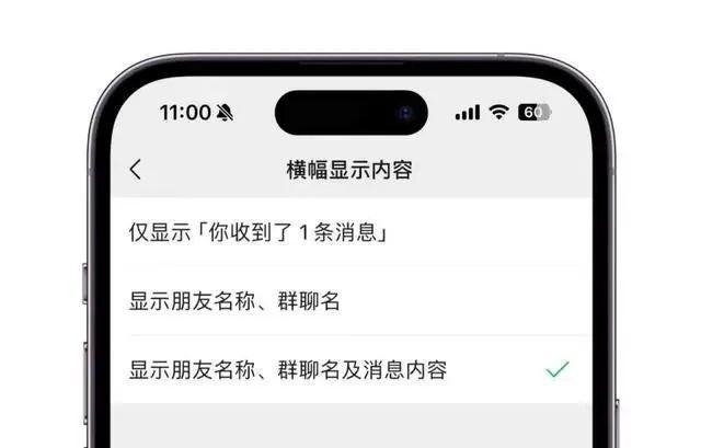 现在可以设置横幅显示内容,可选择仅显示「你收到了1条消息」,效果如下,只会提示有1条消息,不会显示任何的消息内容。