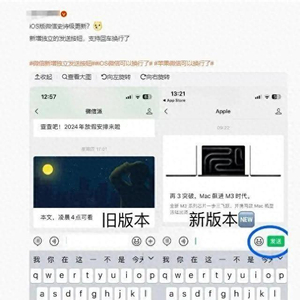 10月31日,iOS版本微信更新了8.0.43版本,新增了一个换行按钮。
