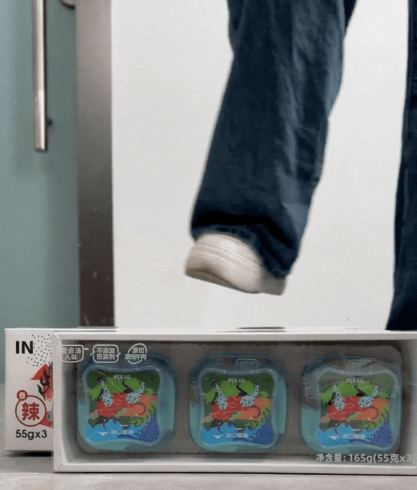 真空小盒的包装,能随时带在身边,饿了吃上一盒补充能量,顺带解解馋!