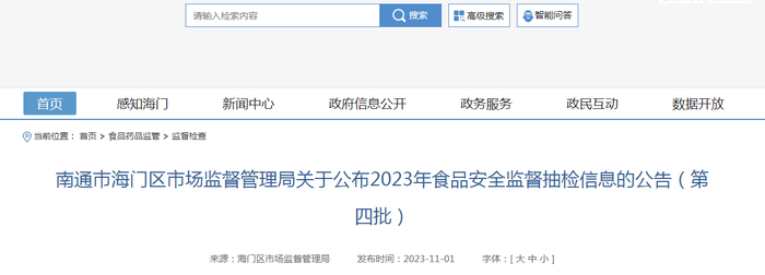 江苏省南通市海门区市场监管局公布2023年食品安全监督抽检信息(第四批)
