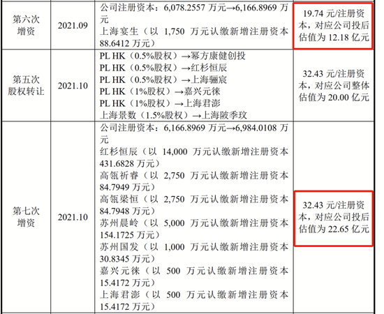 不过,上海宴生的增资价格与2021年10月外部投资者入股价格相差较大,2021年10月,红杉恒辰入局,股权转让价格为32.43元/注册资本,公司估值拔高至22.65亿元。