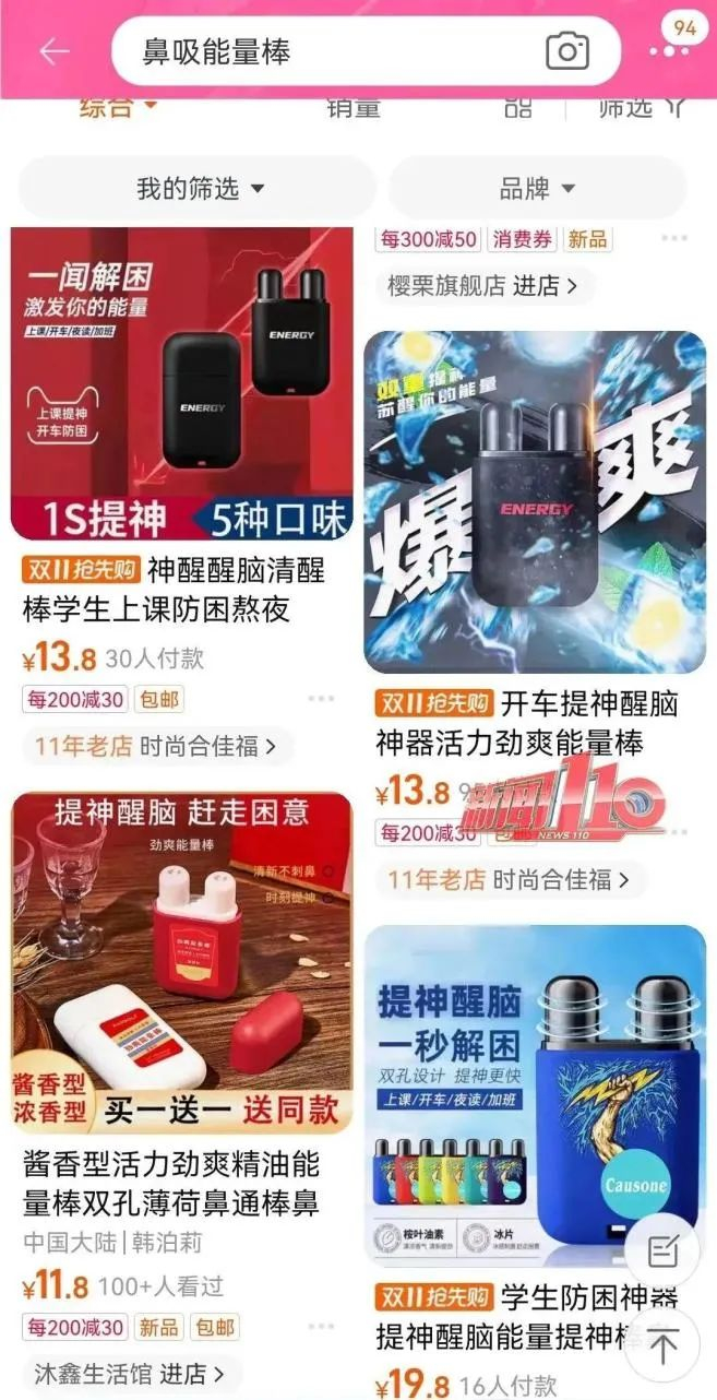 最近,一种名为“鼻吸能量棒”的商品在校园中风靡。