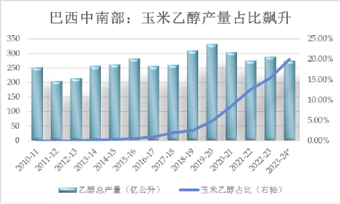 由于巴西乙醇的基本面供需格局较为稳定,加上近两年来玉米乙醇产量的大幅提升,使得因制糖比例最大化导致的甘蔗乙醇产量下降的 影响不被市场感知,乙醇价格在23/24榨季开榨以来在13-18美分/磅区间波动,糖醇价差因原糖上涨而从5美分/磅迅速拉涨至13美分/磅,在不出现重大政策变革的情况下,后期糖醇价差的修复将需要通过原糖价格的下跌来完成,但预计直至24/25榨季结束前糖价都将对乙醇价格保持足够令糖厂最大化产糖的溢价。
