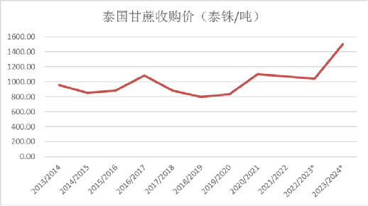 不过,泰国24/25榨季的产量恢复值得期待,受到22/23榨季糖价大涨的提振,泰国23/24榨季的初始甘蔗价格大幅上涨至1500泰铢/吨的历史新高,有望令甘蔗种植收益重新超越木薯,提升种植积极性,