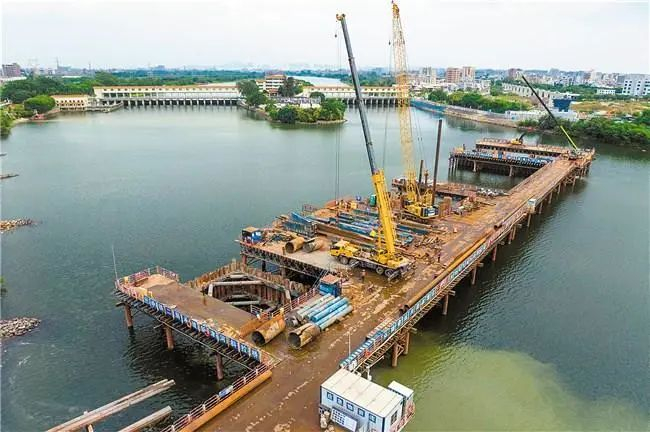 另外,上跨外砂河的外砂河大桥2个水中主墩围堰基坑封底完成混凝土浇筑,标志着全线控制性重难点工程正式由“水下”向“水上”转序,计划明年春节前大桥所有水中墩完成墩身施工。