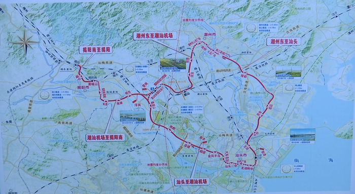 粤东城际铁路规划总里程460公里,形成“一线两环两射线”城际铁路网。先行实施的粤东城际铁路“一环一射线”项目连接汕头站、潮汕站、揭阳站、潮汕机场等对外交通枢纽,总长140多公里。