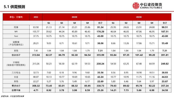 【建投有色】2024全球镍供需预测与价格展望