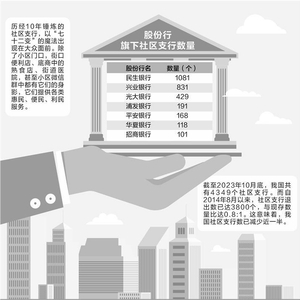 据记者统计,截至10月末,12家股份行设立的社区支行总数达3000余个。这意味着,在社区支行诞生10年后,股份行在该领域仍占据半壁江山。
