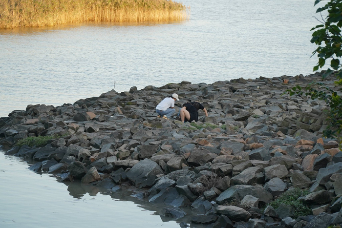 询问得知,堤坝上的几名大四学生在等待五点退潮,便可以从这边的堤坝走去灯塔。被问及是否了解江边涨潮的危险,大学生们对记者表示,他们都听说过前段时间发生的南汇海滩女童遇难事件,但他们都是大学生,不担心这些危险。