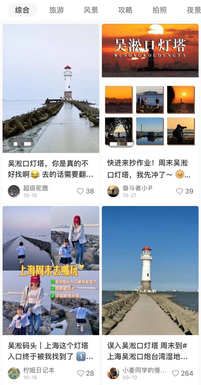 社交平台上的吴淞口灯塔。