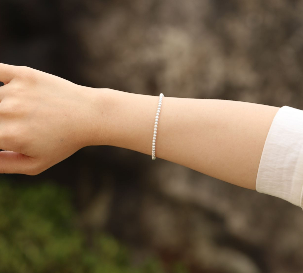 自古以来,银饰都为人们所爱,这款手串以S925银做的珠链,环绕腕间,有一种低调的温润感。