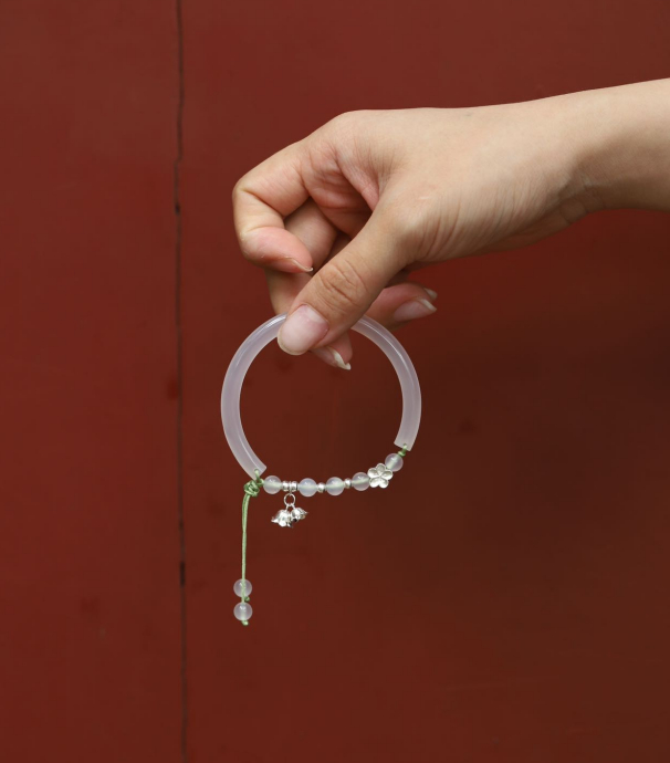 镯上装饰的S925银小花,为蓝铃花,寓意温柔的爱意,也是对生命、他人的感恩、谢意。