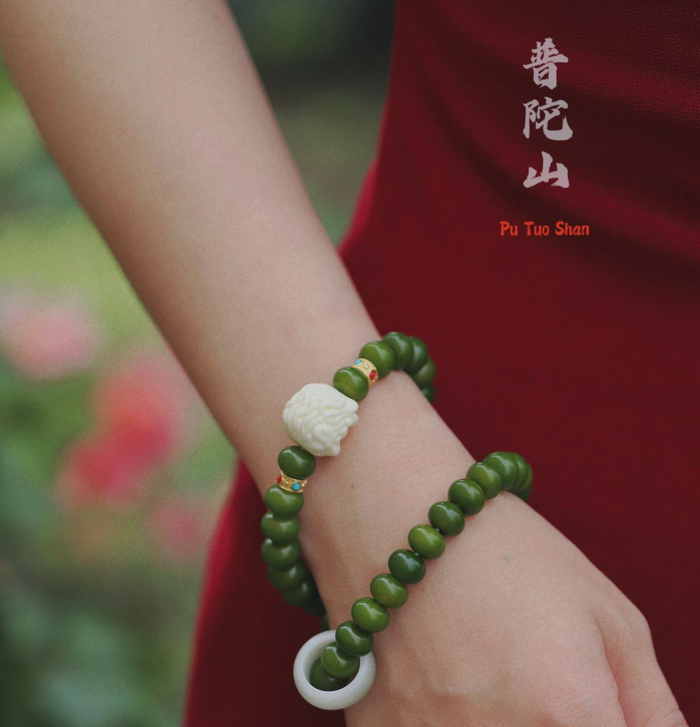 这些用料矜贵,设计文雅,可自戴把玩,亦可收藏赠礼的手串中,蕴含着你自己的祈愿,也收纳着一份来自普陀山的祝福。