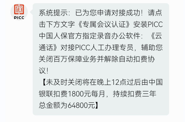 近日我们公司营业网点,不断的客户上门着急咨询,称收到了自称人保客服的人员,说自己微信上在中国人保投保的百万保障即将到期,如不及时关闭或续费,就需要支付800-2000元不等的保费。自己看到是中国人保承保的,赶紧上网点来咨询。
