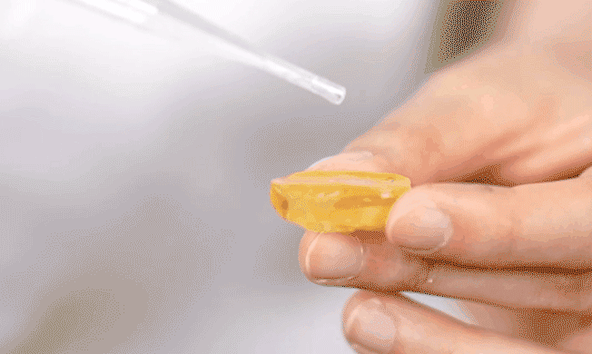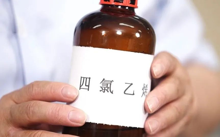 另外,生活中还有一种比乙酸乙酯更好的试剂帮我们打假,它就是四氯乙烯,也就是我们平时干洗店里常用的一种干洗剂。它对于市面上那种被涂了膜经过处理的假琥珀,效果明显。