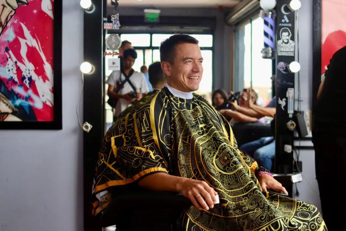 ·诺沃亚在一个厄瓜多尔青年开的理发店剪发。