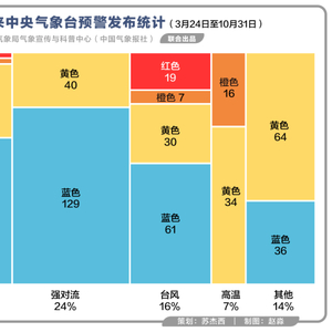 今年汛期极端天气多发频发,暴雨、高温、台风、强对流轮番 “登场”。针对灾害性天气过程,入汛以来(截至10月31日),中央气象台共发布灾害性天气预警信号716期,其中暴雨预警280期、强对流预警169期、台风预警117期、高温预警50期、其他预警(沙尘暴、大风、大雾)100期。