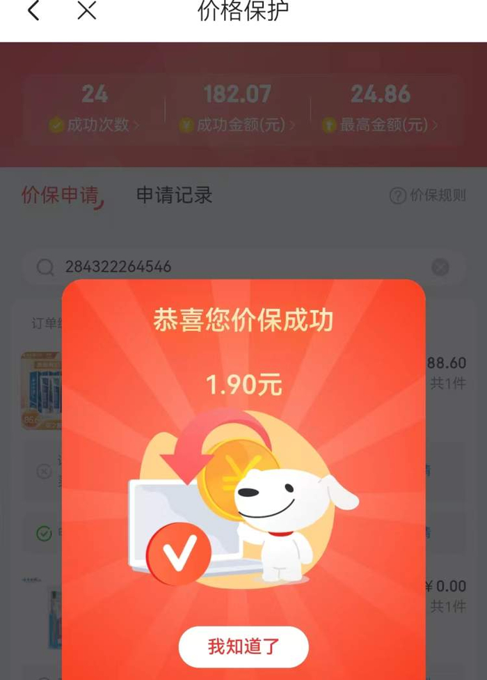 可喜的转变是,经过电商平台的功能更新,出现了“自助保价”的功能,发现商品降价,个人可以自己点击“申请保价”按钮,系统自动计算可退的金额,保价成功,差价会直接原路退还。