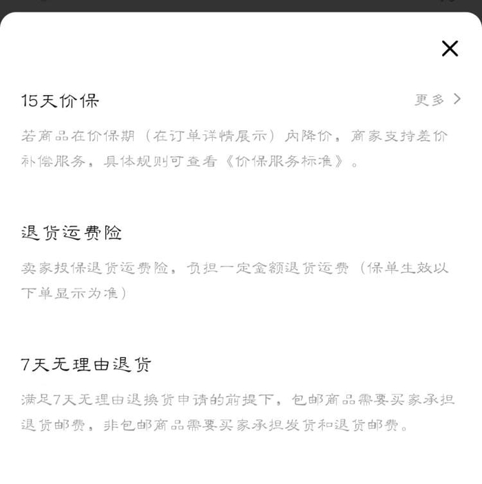 以前购物总结出来的经验是,要确认好有7天无理由退款,现在还要再看看有没有15天或30天保价。