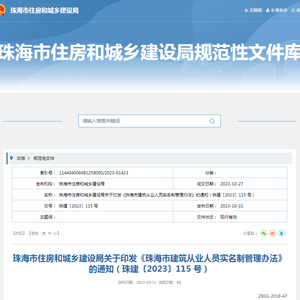 珠海市住房和城乡建设局关于印发《珠海市建筑从业人员实名制管理办法》的通知