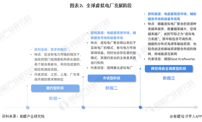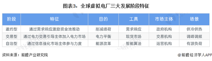 全球虚拟电厂发展分为邀约型、市场型和跨空间自主调度型三个阶段。