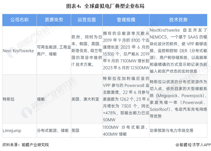 全球企业布局:代表企业有Next Kraftwerke、特斯拉等