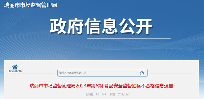 云南省瑞丽市市场监督管理局公布2023年第6期食品安全监督抽检不合格信息