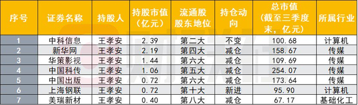 除了葛卫东外,王孝安仍重仓AI概念股。持股特征方面,王孝安三季度持股公司以传媒、计算机领域的AI概念股为主,如中科信息、新华网、华策影视、中国科传等。