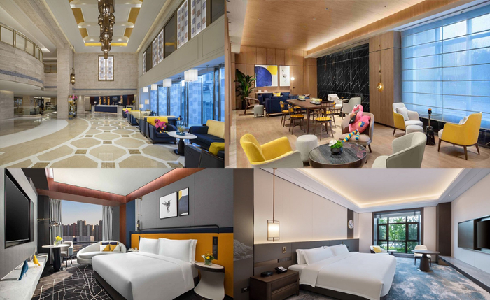 从左至右依次为: 广州十甫voco酒店、西安经开voco酒店、合肥滨湖 voco酒店、雄安朗悦voco酒店