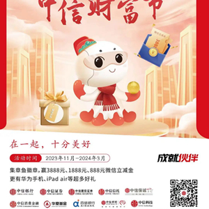 中信联合金融舰队第一次倾力推出的“中信财富节”,也是一场对客户诚意满满的回馈,各类活动与好礼惊喜连连。主线活动“集章鱼徽章,抽财富大奖”加入了新颖互动的营销玩法,只要完成平台的任一任务即可获取章鱼徽章,并有机会参与财富广场的各类抽奖活动,“月月抽红包”中奖率100%,“抽终极大奖”不仅有超级大奖,更有“章鱼一家人”盲盒、iPad、华为手机等丰富好礼。