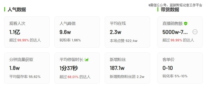 据飞瓜数据统计,郑香香账号10月4日单场带货GMV高达5000万-7500万,单场平均在线人数达2.3万,单场涨粉187.1万,目前郑香香已经在抖音收获超过500万粉丝。