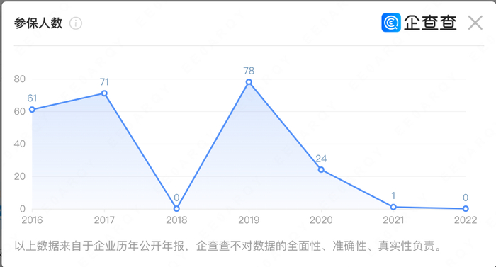 企查查风险信息显示,该公司存在多条股权冻结信息,被执行人均为恒大地产集团有限公司,冻结股权数额200万。值得关注的是,年报信息显示,该歌舞团2022年参保人数已降为0人,而2019年最高参保人数为78人。