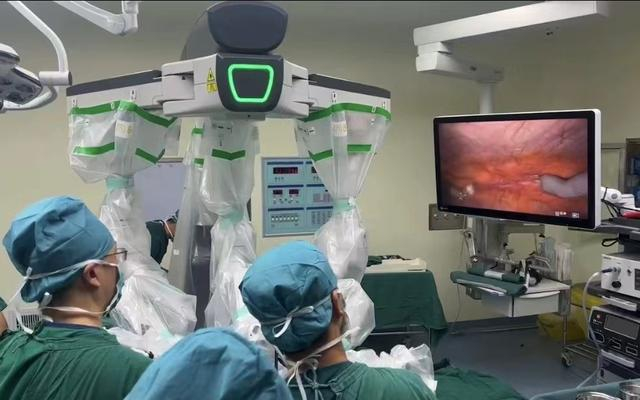 术中,国产机器人开放式医生控制台为医学团队提供三维高清放大视图,使医疗团队得以清晰辨认病灶解剖结构,以减少对血管神经的损伤,且灵活地手术器械支持陈杰教授能够更加稳定、精细、方便地完成分离、缝合等手术操作,手术时间短,出血量少,手术顺利完成。