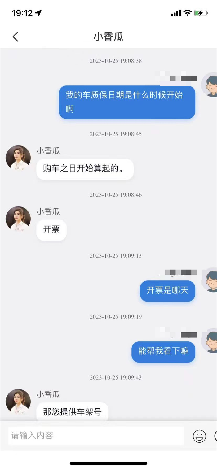 张先生表示,涉事车辆首次购车和开具发票的日期是2022年12月29日,购买方为一家企业。“现在由于首次购车日期不是我买车的日期,所以我车辆的三包起始日期要从2022年年底开始算,而不是2023年4月,这直接造成我权益受损。”
