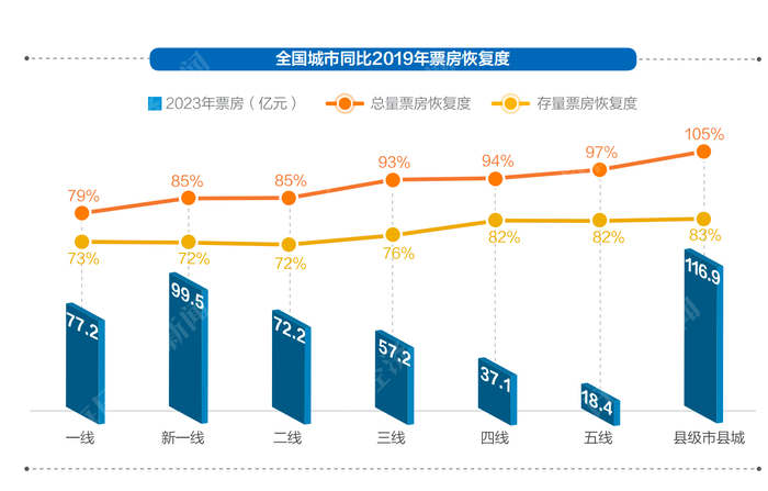 《2023强影之路》显示,电影行业的投资、供给、消费的各个环节都逐渐恢复,其中下沉市场恢复度最高,功不可没,如今下沉市场已经成为“兵家必争之地”。