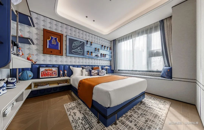 整体三房设计,足以满足二孩家庭的日常居住需求。也可以将北向房间作为书房使用,打造不被打扰的专属工作区。当然,还可以更加大胆地将南北两个房间打通,直接拥有双面采光+双面飘窗+卧室+书房+卫浴+衣帽间的套间PLUS。